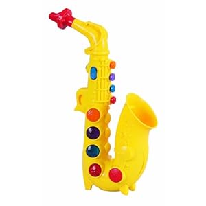 Give a star performance with this jammin saxophone that plays 18 songs while light flash. Made of quality plastic in vibrant colors our saxophone has 4 buttons that play notes and 4 light that play short tunes when pushed. Encourages music appreciation and fosters imaginative play.